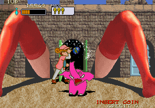 Interessante, per quanto ci riguarda, il boss del secondo livello, un cowboy truccatissimo, saltellante e con un naso (fuori da ogni iperbole o metafora?) che sia allunga e ci colpisce. Quattordici anni prima di Brokeback Mountain di Ang Lee, i cowboy gay portavano già un rossetto cherrylips numero 8.